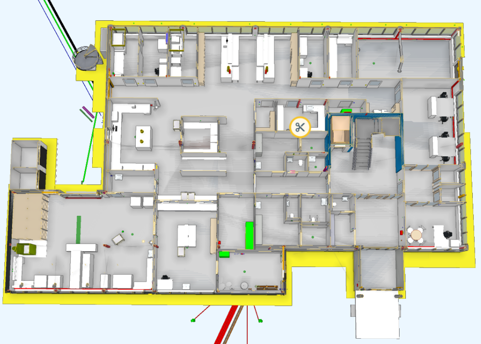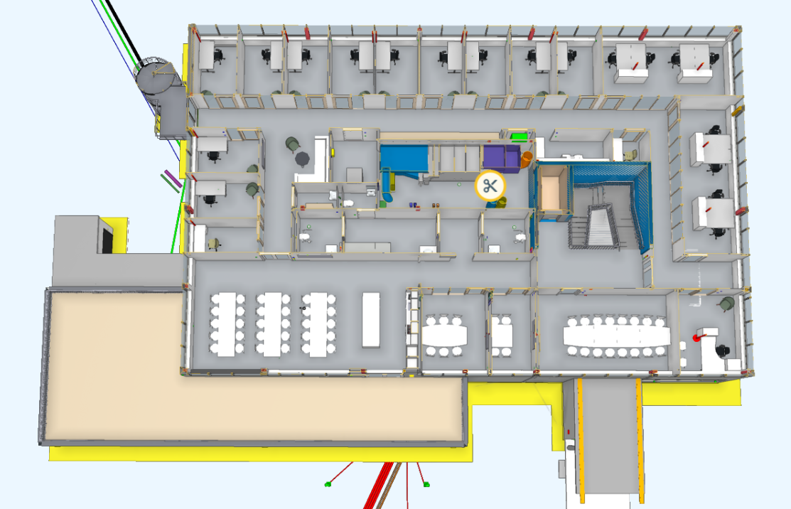 Bildet til venstre: 1. etg. Laboratorie. Bildet til høyre: 2. etg. Kontorer |